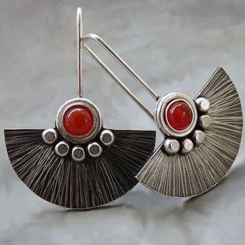 עגילי קיסר אדומים וינטג' בצבע כסף