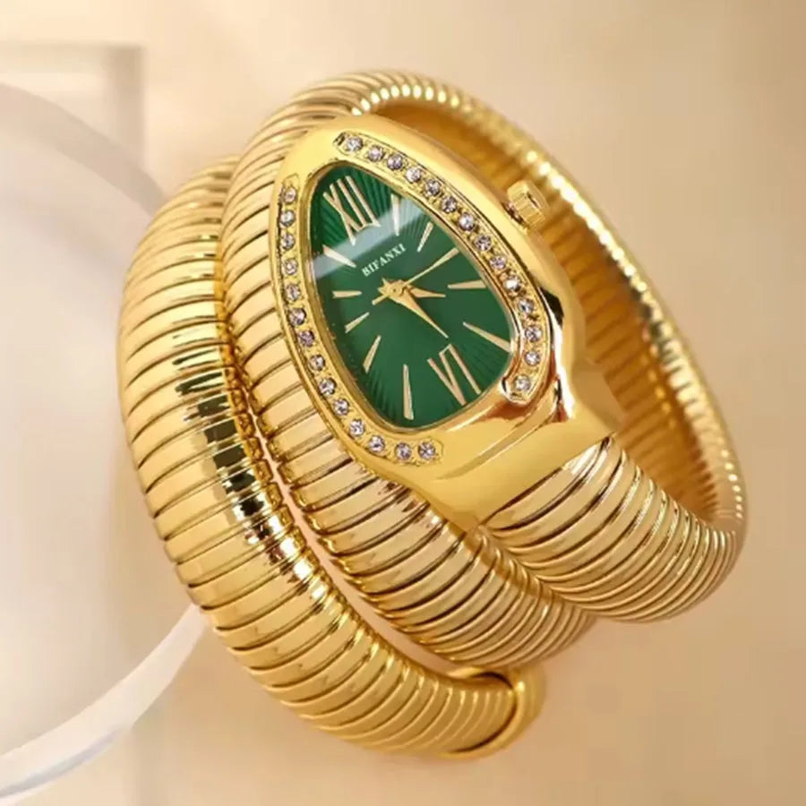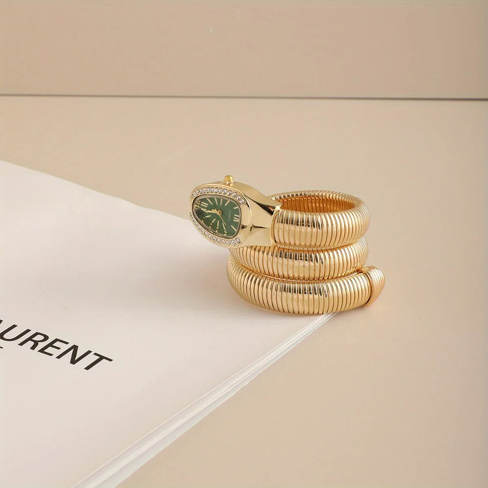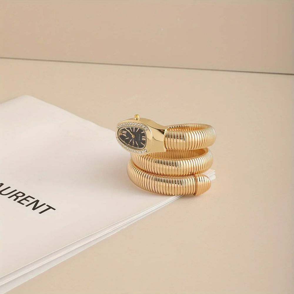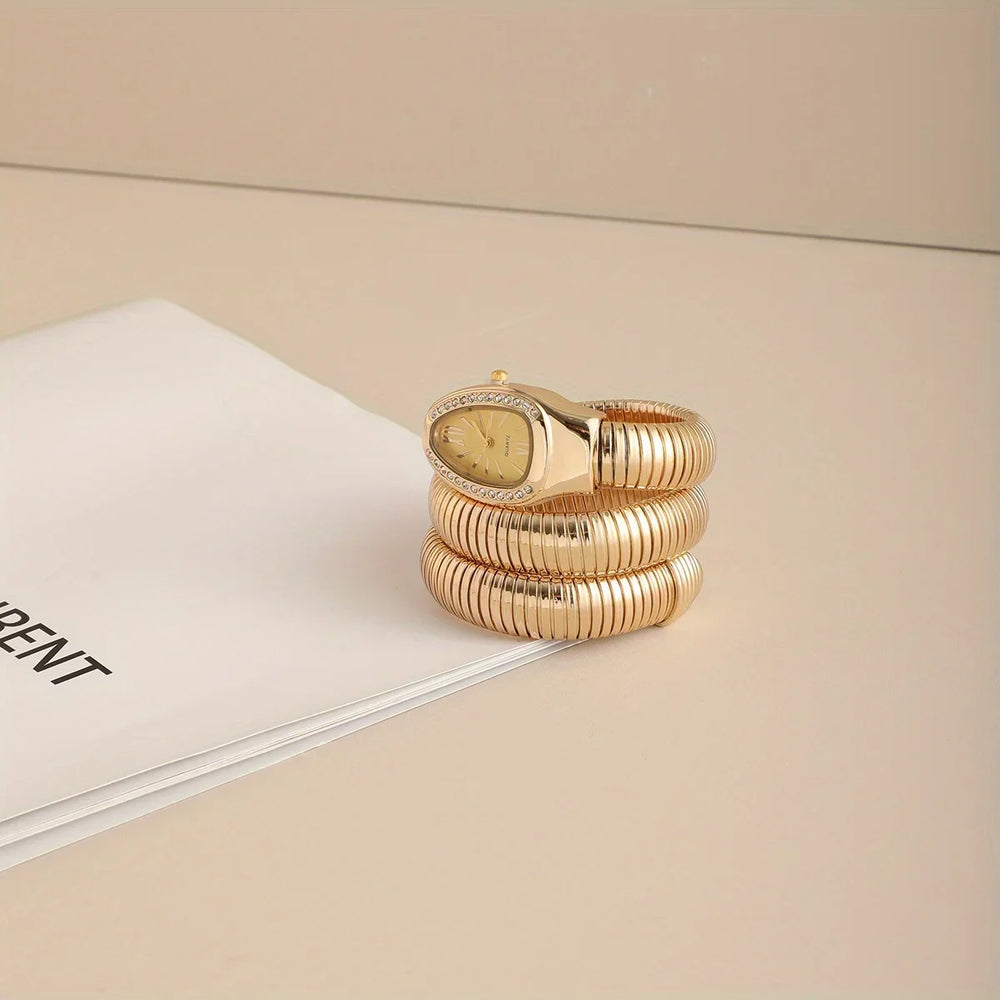 "שעון נשים יוקרתי עם רצועת סגסוגת, קייס בעיצוב חייתי, מנגנון קוורץ, זכוכית פלסטיק, ללא ספרות, כולל סוללה, ללא עמידות במים."